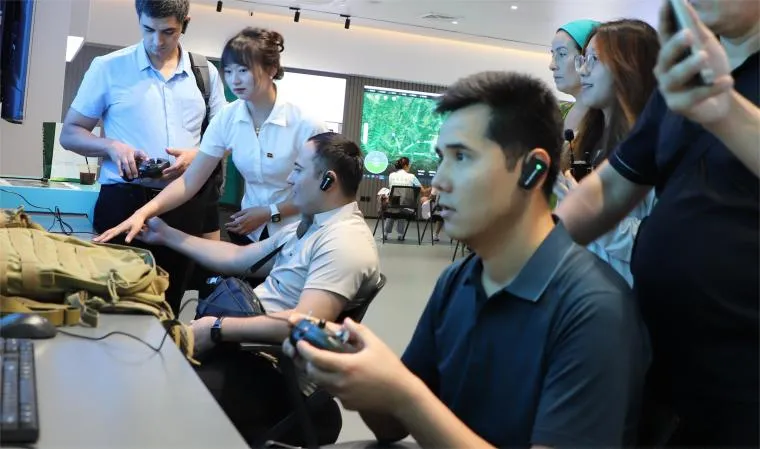 (Bakhtinur Sindorov先生正在体验无人机操作模拟器)